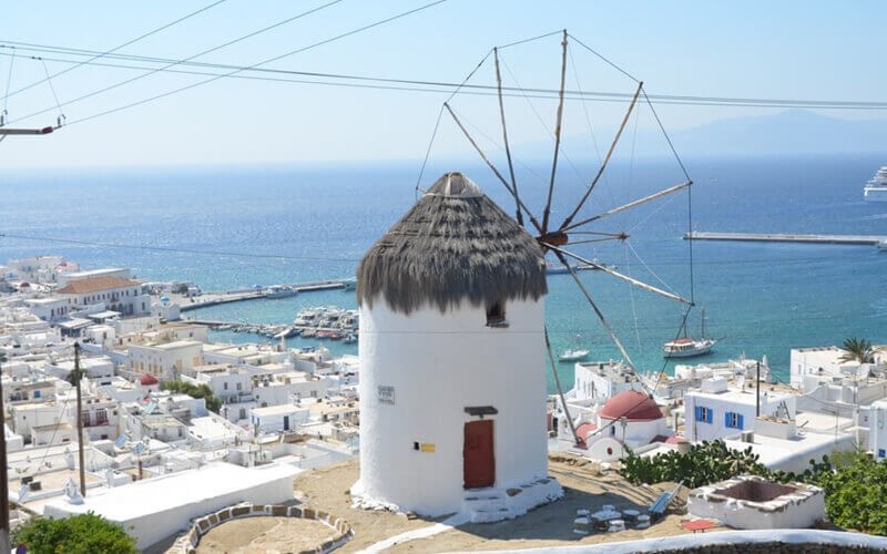 The space is ideal for tour but also for panoramic pictures with the traditional settlement of Mykonos as a background.