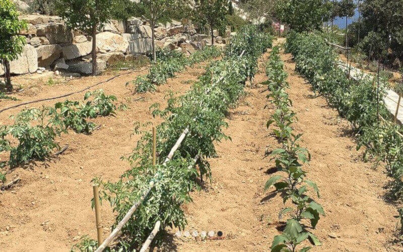 Η ξενάγηση ξεκινά από το αμπέλι με το παραδοσιακό πατητήρι, τις καπαριές, το λαχανόκηπο, τη ρίγανη και τις ελιές. Η ξενάγηση συνεχίζει περνώντας μπροστά από τις κατσίκες και τις κότες που βόσκουν ελεύθερα κάτω απ’τις ελιές. Παρουσιάζονται τα χαρακτηριστικά της αγροτικής καταγωγής στην Πάρο, τη σημασία που παίζουν οι ξερολιθιές και οι πεζούλες για τη γονιμότητα του εδάφους και τη συγκράτηση του νερού και διάφορες πληροφορίες για την παραγωγή του κάθε φυτού.